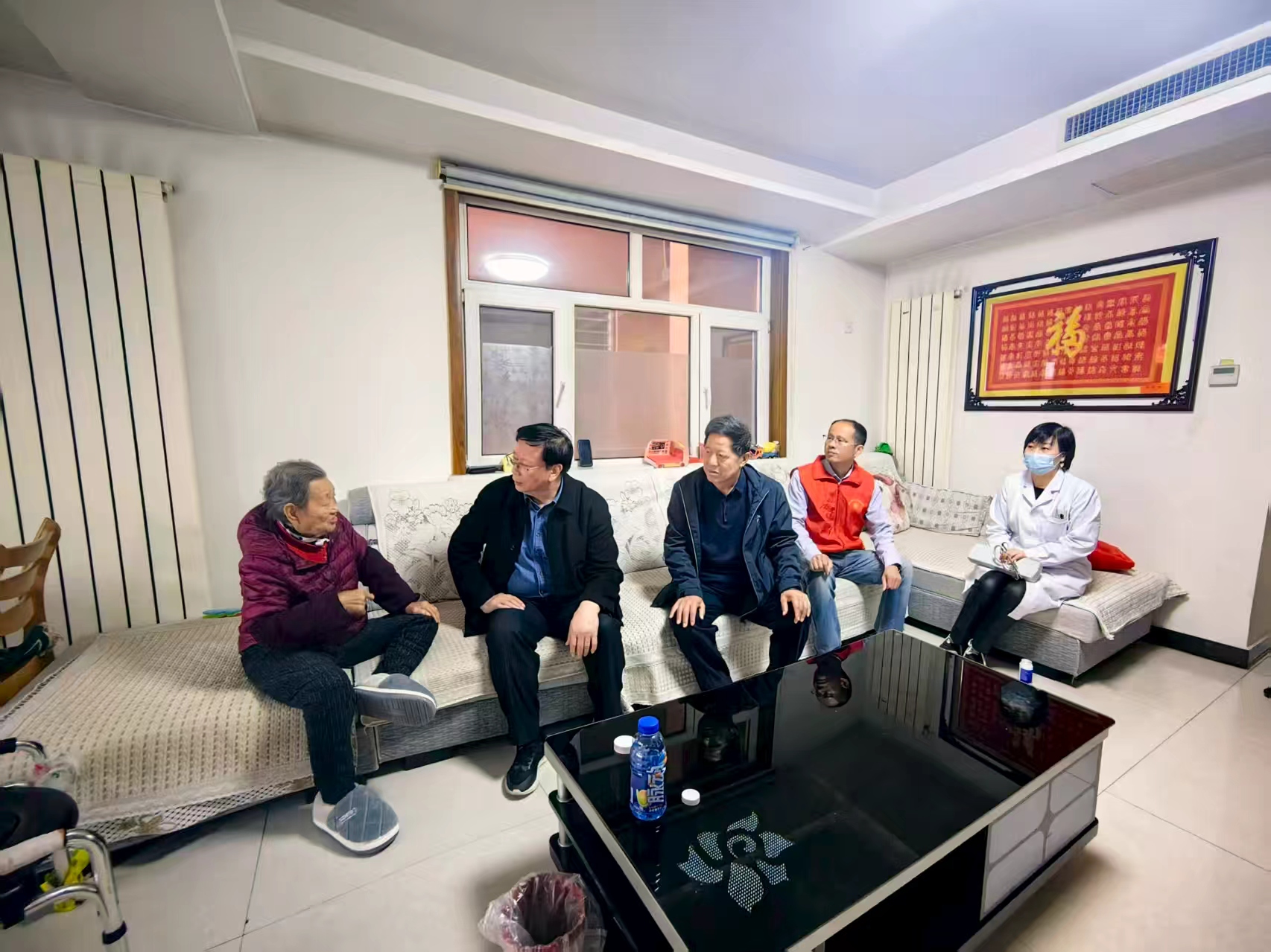 活动当日,潘国成院长带队,与医护志愿者、市民政局工作人员组成慰问队伍,在社区工作者引导下,带着米、面、食用油及应季蚕丝被等实用物资,挨家挨户走访了辖区内20余户独居老人家庭。